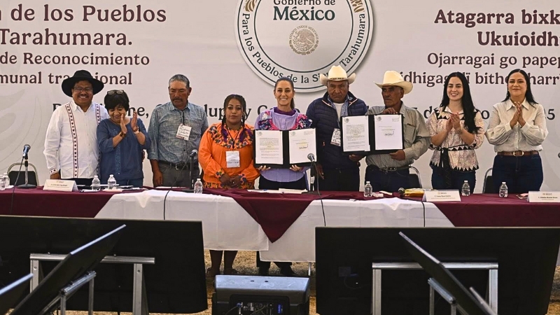 En un acto emblemático para el reconocimiento de los derechos históricos de los pueblos originarios del norte del país, Claudia Sheinbaum Pardo encabezó junto al sector agrario federal la entrega de tierras comunales a comunidades rarámuri y ódami en la Sierra Tarahumara, estado de Chihuahua.